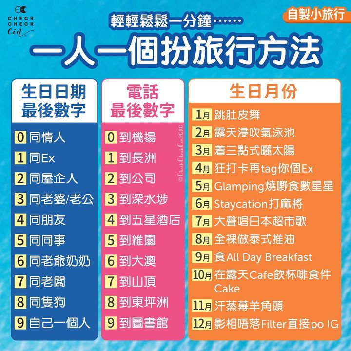 【輕輕鬆鬆一分鐘⋯⋯一人一個扮旅行方法】