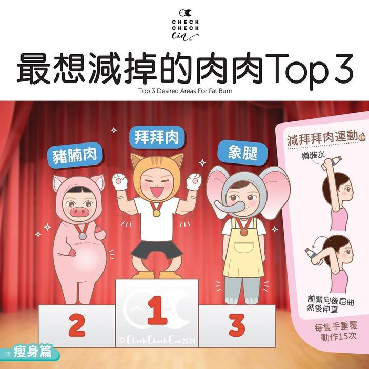 CheckCheckCin辦公室票選「你最想減掉的肉肉」結果,不知道你們最想告別的肉肉又是以下哪種?留言告訴我們吧!